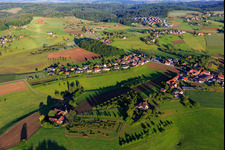 Vue aérienne de Propriété d'une ferme de la Forêt-Noire en bordure de champs cultivés dans le district de Reichenbach à le quartier Brettental in Freiamt dans le département Bade-Wurtemberg, Allemagne prise le 16/08/2013 numéro d'image: 59420