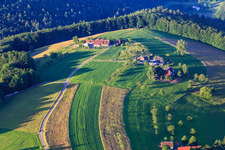 Vue aérienne de Propriété d'une ferme de la Forêt-Noire en bordure de champs cultivés dans le district de Reichenbach à le quartier Brettental in Freiamt dans le département Bade-Wurtemberg, Allemagne
