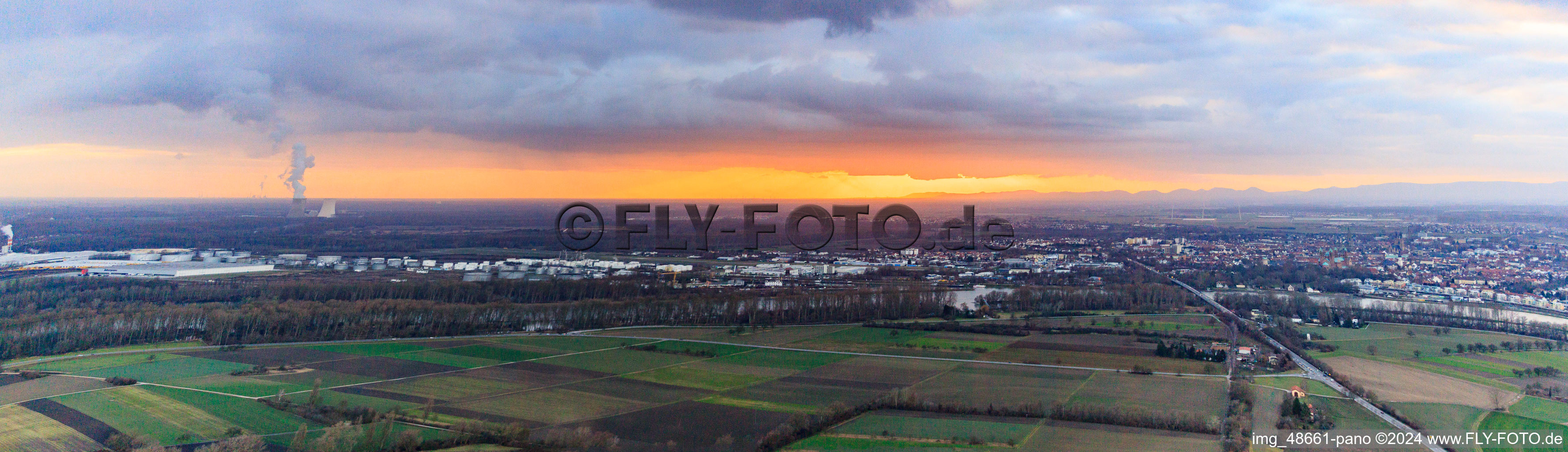Vue aérienne de Pont Salier sur le Rhin au coucher du soleil à Altlußheim dans le département Bade-Wurtemberg, Allemagne prise le 14/01/2012 numéro d'image: 48661